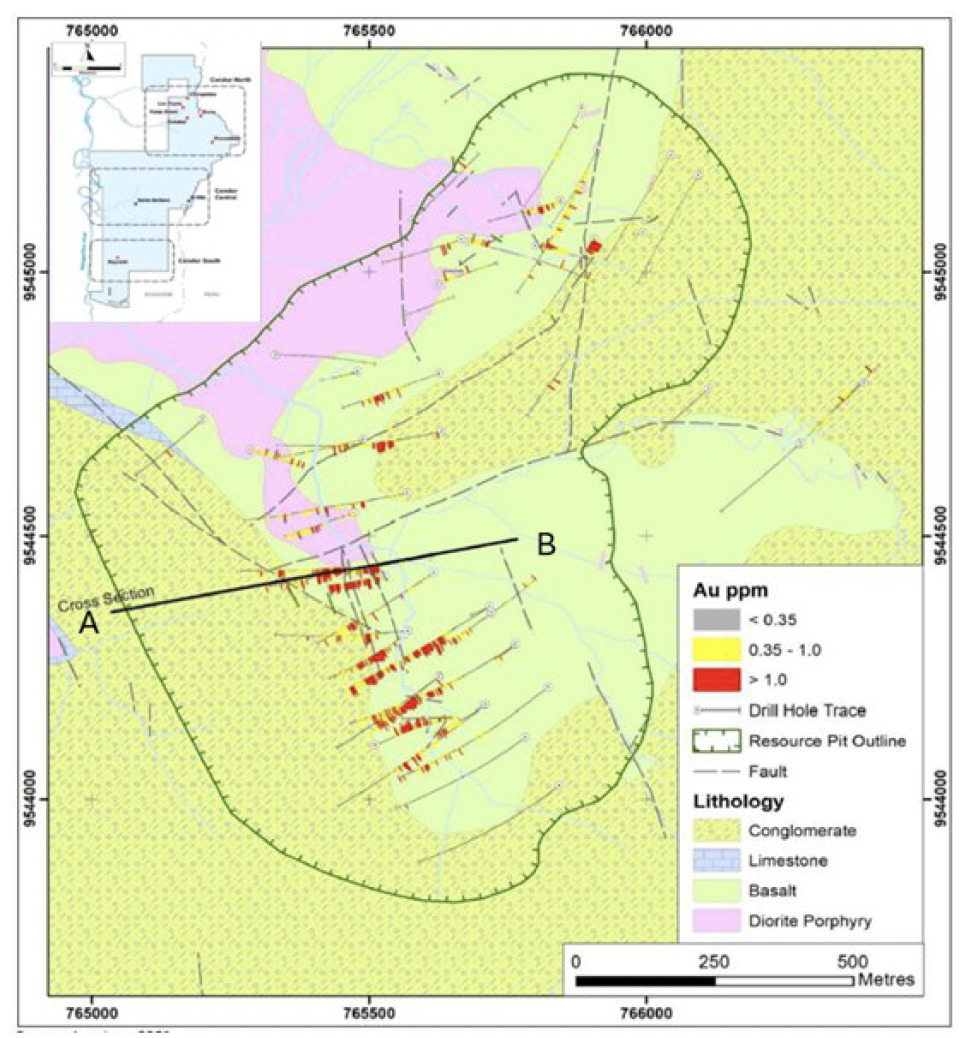 (1) The historical mineral resource estimate is derived from the technical report titled “Condor Project NI 43-101 Technical Report on Preliminary Economic Assessment” prepared by MTB Enterprises Inc. in accordance National Instrument 43-101 - Standards of Disclosure for Mineral Projects (“NI 43-101”), for Luminex Resources, with an effective date of July 28, 2021 (the “Historical Report”).The historical mineral resource estimate reports resources within an optimized open-pit shell using a cut-off grade of 0.37 g/t gold equivalent (“AuEq”) with assumptions of metal price: US$1,500/oz Au, US$18/oz Ag, US$3.0/lb Cu, mining cost $2.0/t, process cost $11.5/t, G&A $2.0/t, gold process recovery 87%, silver process recovery 70% and copper process recovery 80%, pit slope 45 degrees. AuEq = Au g/t + (Ag g/t × 0.012) + (Cu% x 1.371). The block models for the Santa Barbara deposits use a nominal block size measuring 10 ×10 × 10 m. Grade estimates for gold and silver and copper at Santa Barbara (Condor Central) were estimated using ordinary kriging (OK).